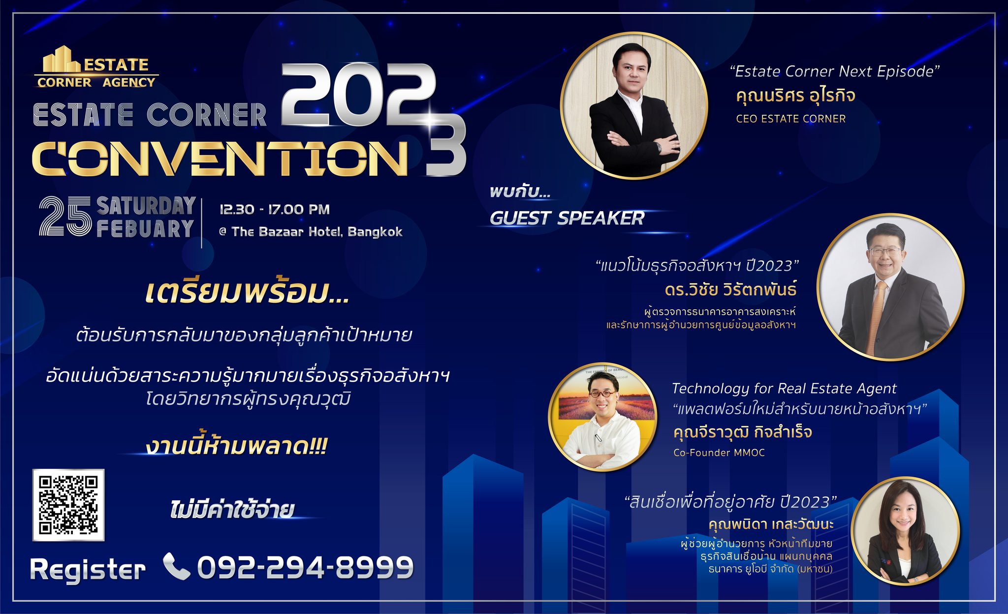 ได้รับเกียรติเป็นวิทยากรขึ้นบรรยายในงาน ESTATE CORNER CONVENTION 2023 ในหัวข้อ Technology for Real Estate Agent “แพลตฟอร์มใหม่สำหรับนายหน้าอสังหาฯ”
