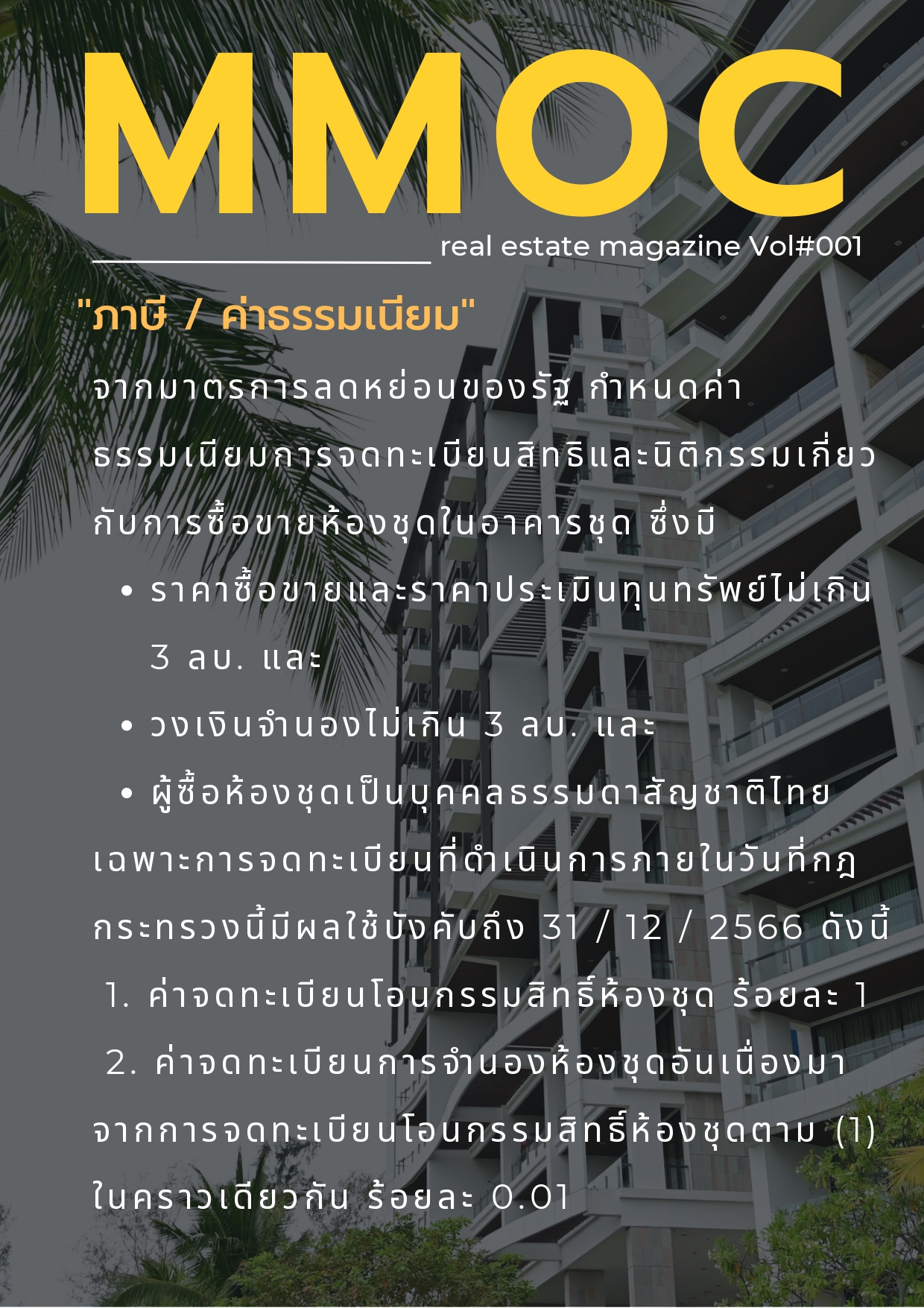 จากมาตรการลดหย่อนของรัฐ กำหนดค่าธรรมเนียมการจดทะเบียนสิทธิและนิติกรรมเกี่ยวกับการซื้อขายห้องชุดในอาคารชุด ซึ่งมีรายละเอียด ดังนี้